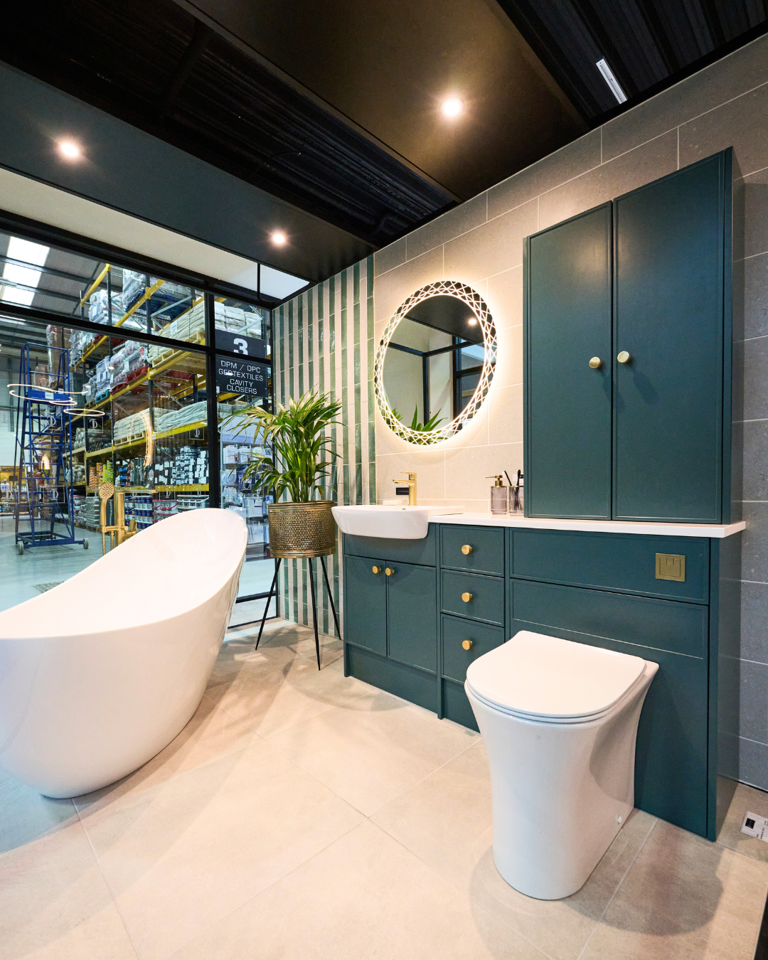 Customers can browse bathroom vanities, towel rails, fittings, and wetroom accessories in a curated, walk-through display experience.