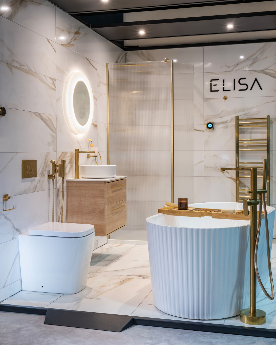 Premium brassware, walk-in showers, and stone-effect bathroom tiles create an environment that feels both high-end and accessible. This display helps you visualise the complete package—from basin to bath accessories display—giving you practical inspiration for your next project.