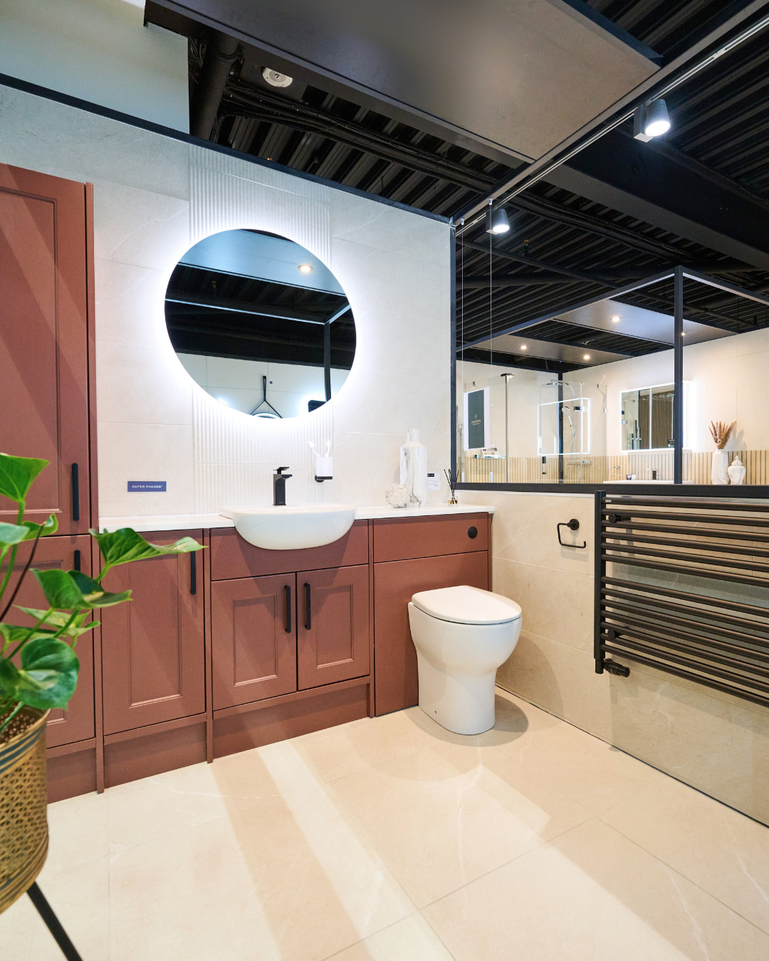 Our showroom regularly rotates display bathrooms, marked as ex display bathrooms for sale, including fully styled suites.