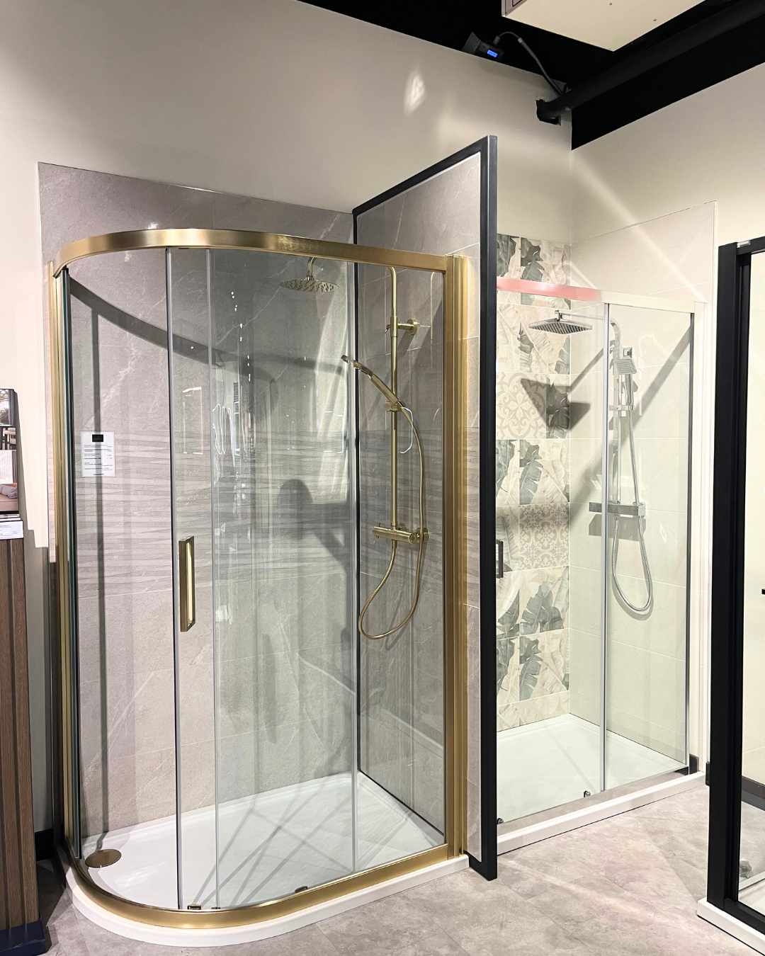 Walk into this open-plan wetroom display and experience the best in shower heads, shower screens, and low-profile shower tray installations.